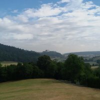 Ab jetzt ging es nur noch bergab. Dabei passierten insgesamt 3 Quellen, die mehr oder weniger gut erkennbar waren. Die Quellen der Gersprenz und des Bärlingsbachs waren baulich so gestaltet, dass man eine Vorstellung von der Quelle bekam. Beim Fischbach musste man einfach glauben, dass er mitten auf einer Weide entspringt. Sehen konnte man nichts. Lediglich der Boden war ziemlich feucht.