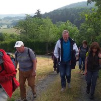 Wir bildeten Fahrgemeinschaften und los ging es zur Schneckenkapelle nach Billings, einem Vorort von Fischbachtal. Von hier nahmen wir Teil 2 des Pilgerweges in Angriff. Dieser führte in der ersten Hälfte nur bergauf. Der Höhenunterschied zwischen dem niedrigstem und dem höchstem Punkt der Wanderung war immerhin 400 m.